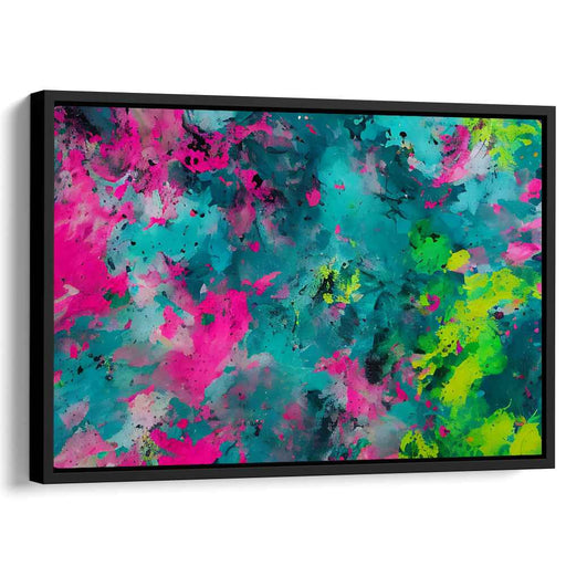Chromatic Whirlpool: Abstract Expressionist Explosion in Teal and Pink Canvas Art
