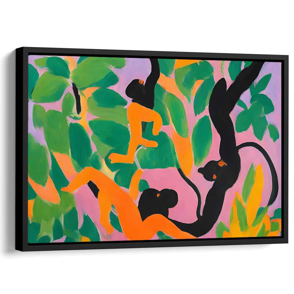 Tropical Tangerine Jungle Jive: Vivid Orange Monkeys in Lush Greenery Canvas Art Print