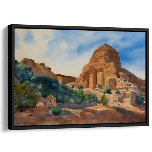 Eternal Desert Majesty: Impressionist Watercolor Landscape with Ancient Ruins