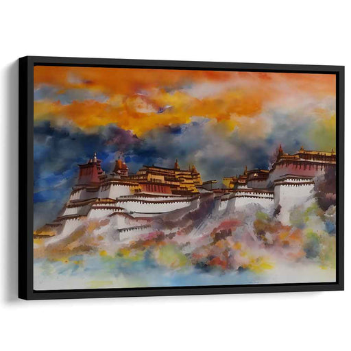 $82.00 USD $118.00Introducing 'Monastery Hue Serenade,' a mesmerizing watercolor canvas art piece that transports viewers to the serene heights of a Tibetan monaster...