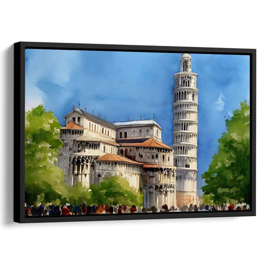 Whispers of Italian Elegance: Watercolor Leaning Tower of Pisa Canvas Art Print