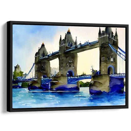 Ink Splatter Cityscape: Watercolor Tower Bridge Canvas Art Print