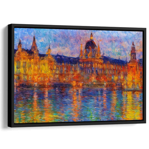 $82.00 USD $118.00Introducing 'Crimson Reflections on Cobblestone: Riverside Townscape,' a mesmerizing canvas art print that transports viewers to a serene riverside...