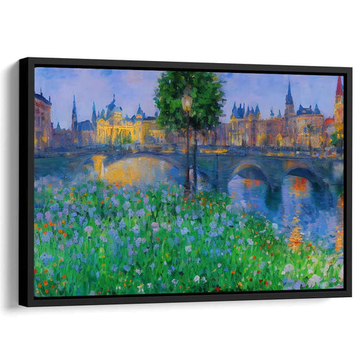 Sunlit Urban Tapestry: Impressionist Cityscape Canvas Art Print