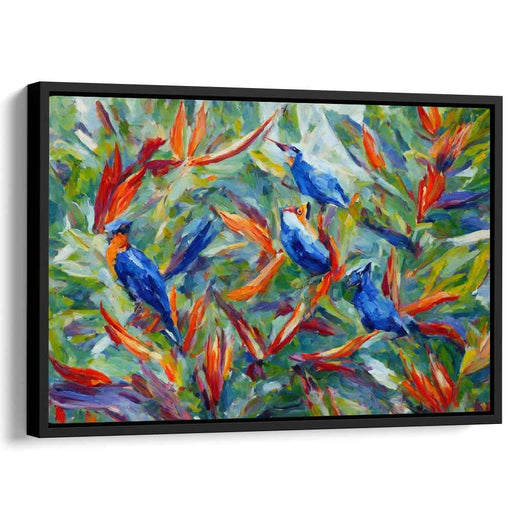 Avian Watercolor Symphony: Impressionist Bird of Paradise Floral Canvas Art Print
