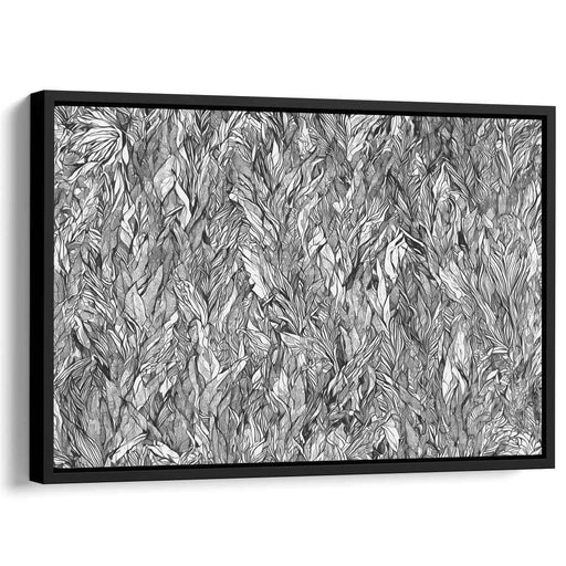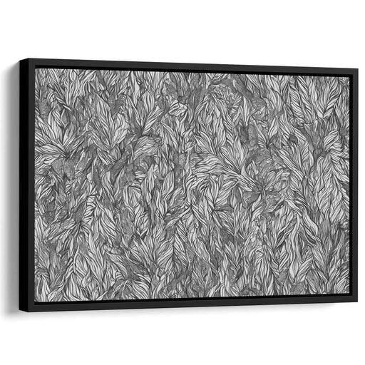 Inkwell Foliage Ballet: Detailed Leaf Pattern Black and White Canvas Art