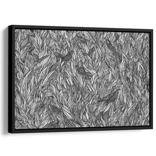 Avian Silhouettes on Foliage: Monochromatic Birds and Leaves Canvas Art
