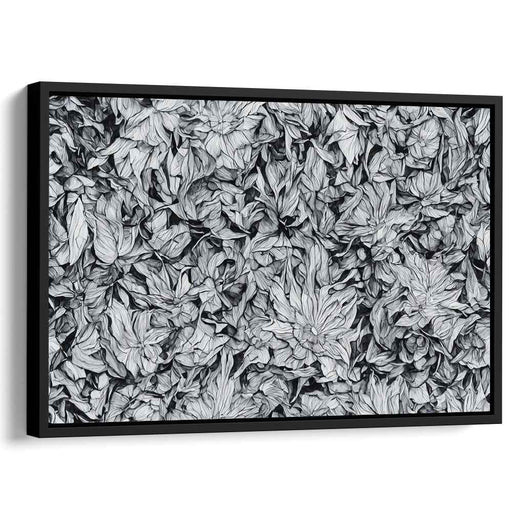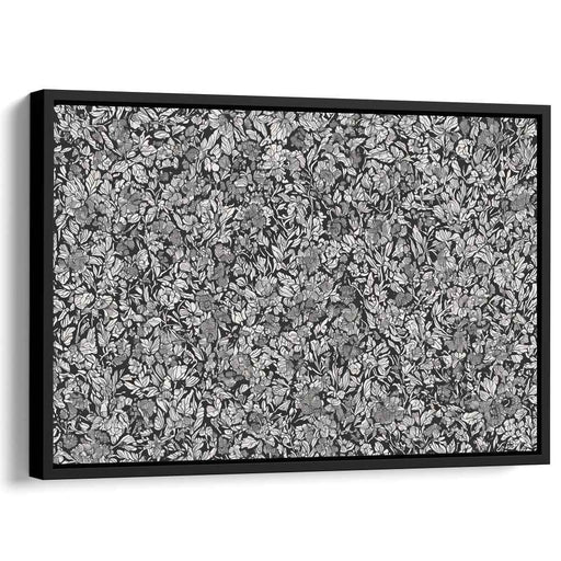 Monochrome Garden Symphony: Intricate Black and White Floral Canvas Art Print