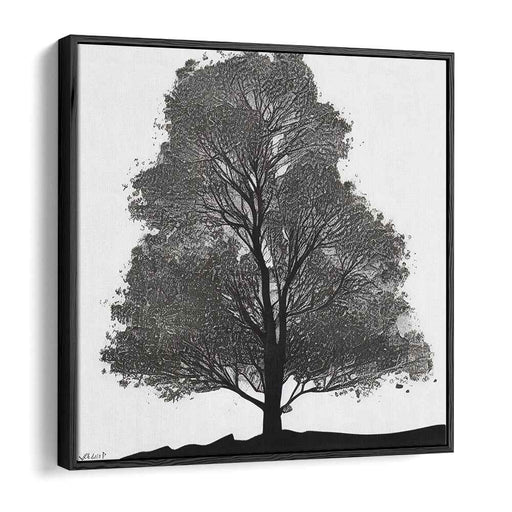 Ink Blot Shadows Dance: Modern Monochromatic Tree Canvas Art Print