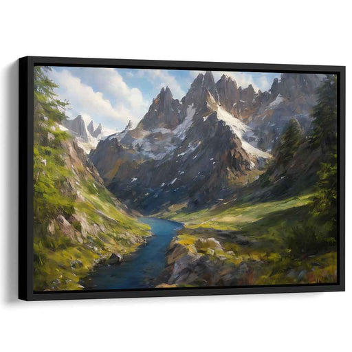 Majestic Peaks Embrace: Vibrant Mountain Vista Oil Painting