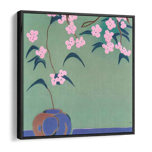 Blossom Dance of Spring: Vibrant Pink and Green Floral Canvas Art Print