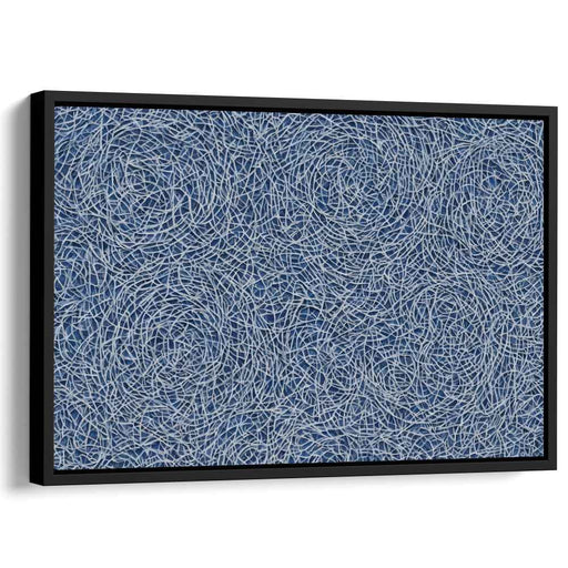 Hypnotic Whorls: Abstract Blue and White Line Art Canvas Print