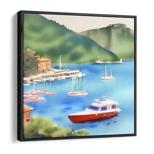 Azure Canals: Vivid Watercolor Portofino Escape Canvas Art Print