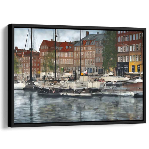 Tranquil Waterfront: Realistic European Canal Scene Canvas Art Print