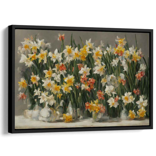 $73.00 USD $105.00Introducing "Translucent Spring Blooms: Luminous Daffodils in Glass Vase," a mesmerizing still life canvas art print that encapsulates the essence ...