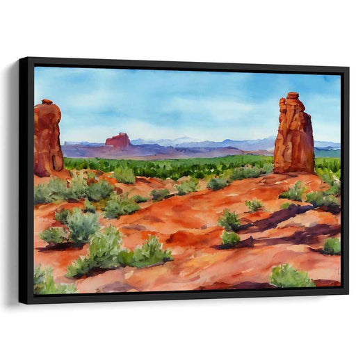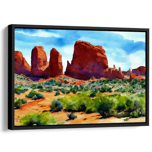 Sunlit Red Rocks: Contemporary Landscape Watercolor Canvas Art Print