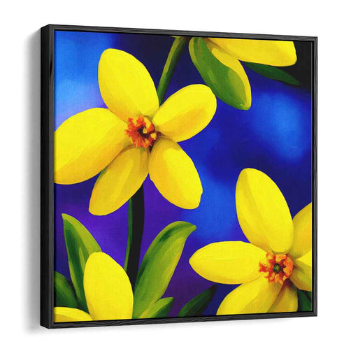 $73.00 USD $105.00Introducing "Sunshine Dance in Indigo," a mesmerizing canvas art print that captures the essence of lively yellow daffodils set against a deep, ric...