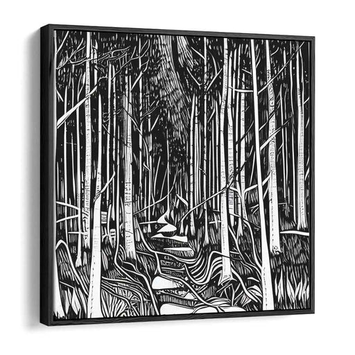 $73.00 USD $105.00Step into the enchanting realm of 'Mystic Woods: Monochrome Forest Path Linocut,' a mesmerizing canvas art piece that immerses the beholder in a ca...