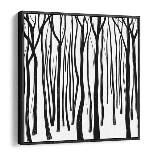 Mystical Monochrome Forest: Black and White Expressionist Woodland Canvas Art