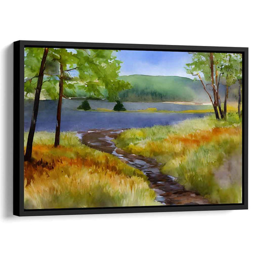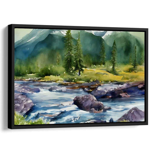 Rustic River Escape: Serene Watercolor Landscape Canvas Art