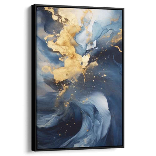 Galactic Serenity Splash: Abstract Navy and Gold Fluid Canvas Art
