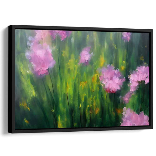 Fleeting Petal Waltz: Impressionist Meadow with Pink Flowers Canvas Art Print