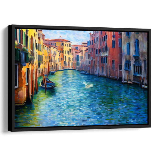 Gilded Waterway Serenade: Luminous Canal Scene Impressionist Canvas Art