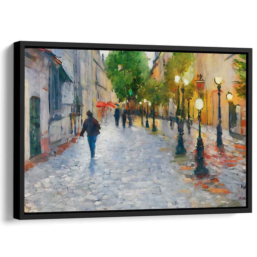 Tranquil Rainy Stroll: Impressionist European Street Scene Canvas Art Print