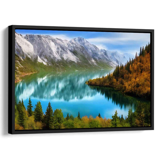 $25.00 USD $36.00Introducing 'Whispering Woods by Still Waters: Tranquil Lake and Vibrant Forest,' a mesmerizing canvas art piece that transports viewers into a ser...