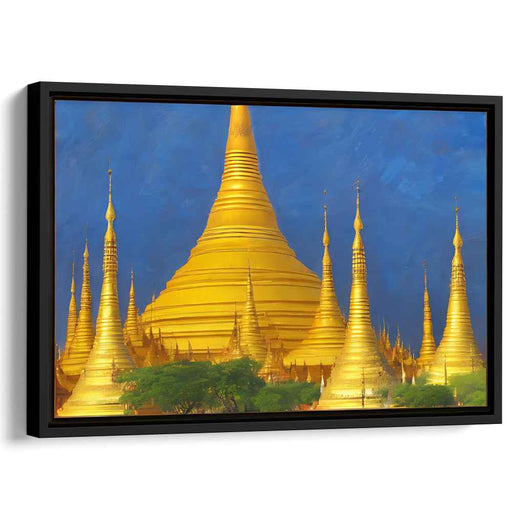 $82.00 USD $118.00Introducing 'Golden Temples and Reflections,' a mesmerizing canvas art print that transports viewers to the sacred grounds of Shwedagon Pagoda in M...