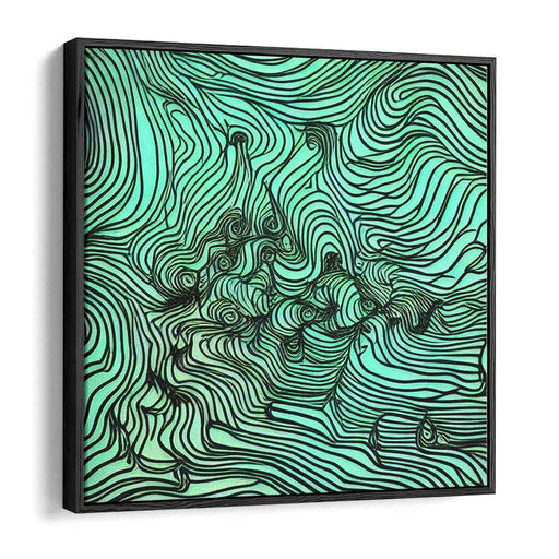 Flowing Currents: Teal and Black Op Art Canvas