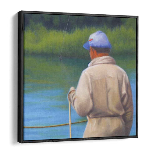 Quiet Reflections: Serene Fisherman by the Lake Canvas Art Print