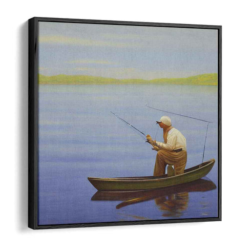 Serene Angler: Realistic Fisherman on Tranquil Lake Canvas Art Print