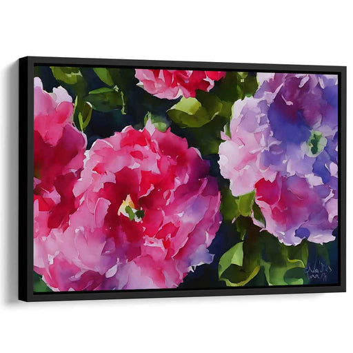$82.00 USD $118.00Introducing 'Blossoms in Whispering Rain,' a mesmerizing watercolor floral canvas art print that captures the essence of blooming flowers in a symp...