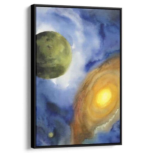 Cosmic Aquatic Dreamscape: Abstract Watercolor Planets Canvas Art Print