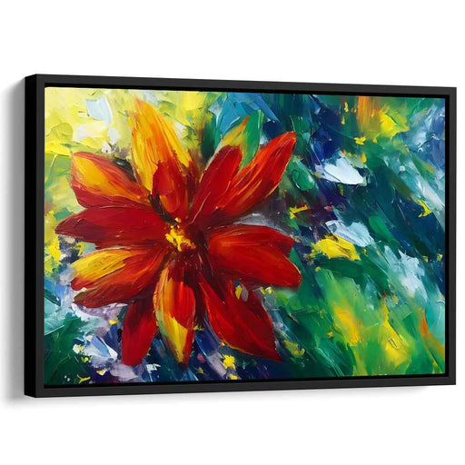 Fiery Bloom: Vibrant Red Flower Impressionist Canvas Art Print
