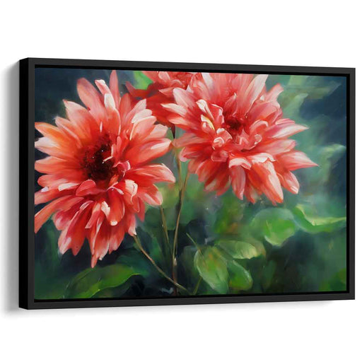 Radiant Dahlias: Lush Floral Canvas Art in Coral Red