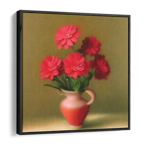 Fiesta Blooms Bursting: Vibrant Red Floral Bouquet in Terracotta Vase Canvas Art