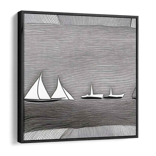 Sailing Through Ripples: Monochromatic Maritime Linocut Style Canvas Art