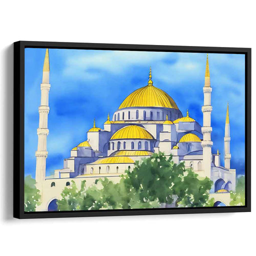 $82.00 USD $118.00Introducing 'Vibrant Day at the Blue Mosque,' a mesmerizing watercolor canvas art that transports viewers to a bustling day at the Sultan Ahmed Mos...