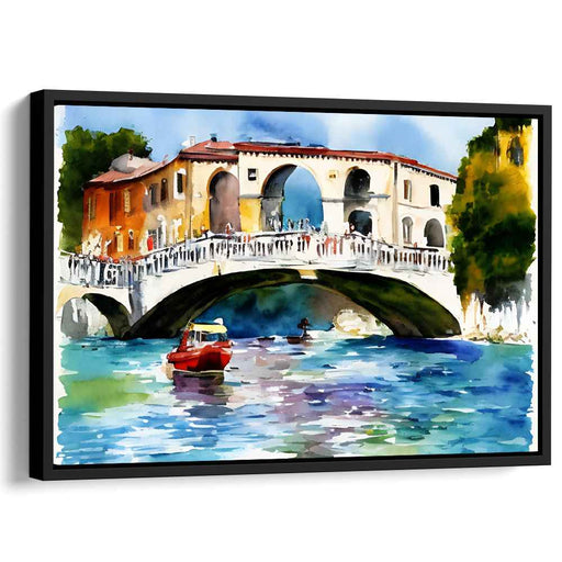 Aquatic Archways: Venetian Rialto Bridge Watercolor Canvas Art Print