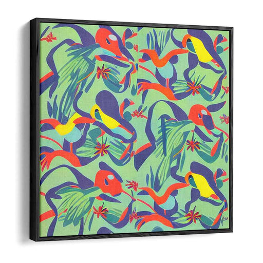 Avian Abstract Paradise: Modernist Toucans in a Lush Colorful Canvas Art