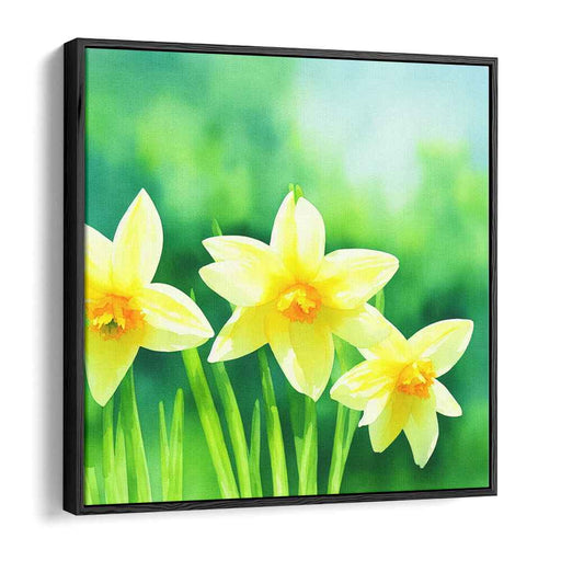 Sunshine in Bloom: Vibrant Yellow Daffodils Watercolor Canvas Art Print
