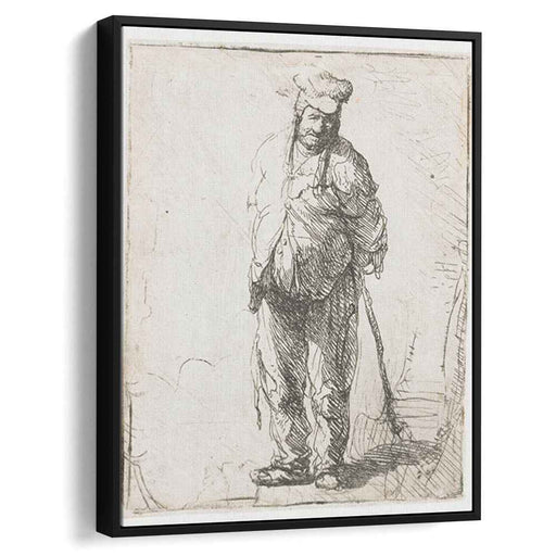 Ragged peasant with his hands behind him, holding a stick by Rembrandt