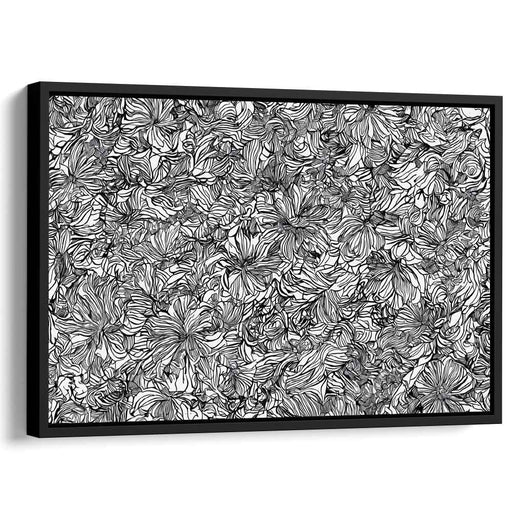 Floral Complexity: Intricate Botanical Black and White Canvas Art Print
