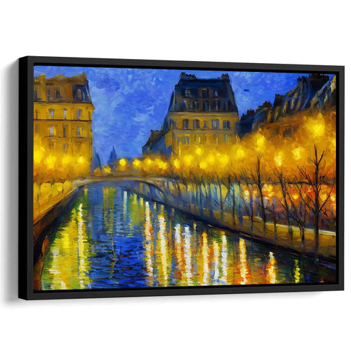 Cityscape Ripples: Impressionist Urban River View Canvas Art Print