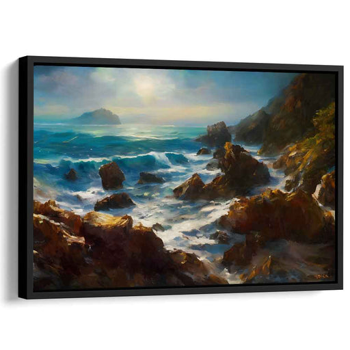 Tides of Granite: Dynamic Seascape with Rocky Shores Canvas Art