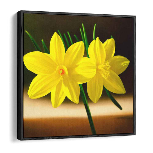 Sunlit Blooms Illusion: Hyper-Realistic Yellow Daffodils Canvas Art Print