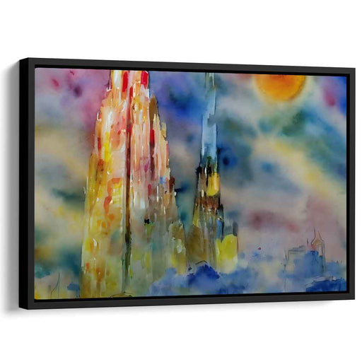 Urban Mirage Splash: Vibrant Watercolor Skyscrapers