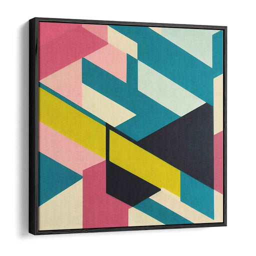 Color Dance in Geometric Harmony: Vibrant Abstract Cubist Canvas Art
